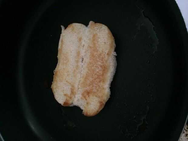 4. deje el pan en la sartén hasta que esté dorado