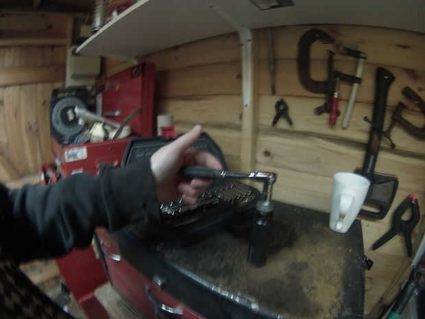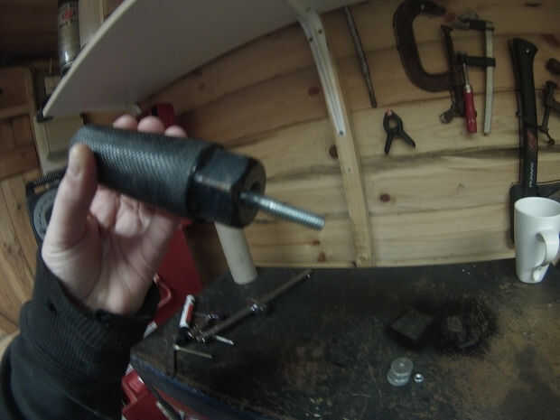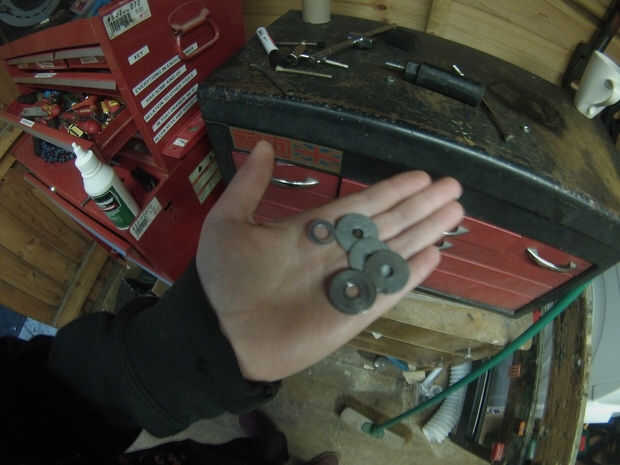 A continuación, agregue varias arandelas y tuercas para espacio/agregar peso y apriete el tornillo en la espiga. Apretar con una toma de