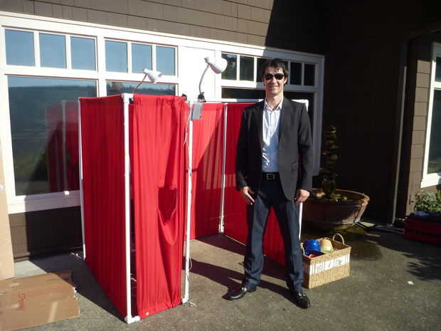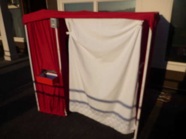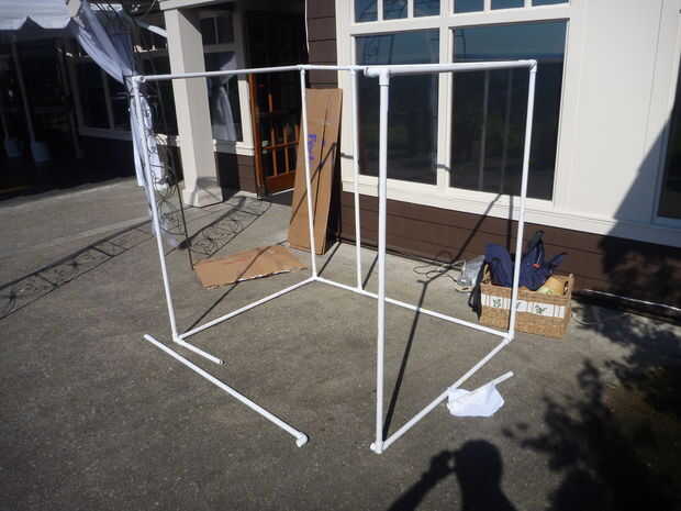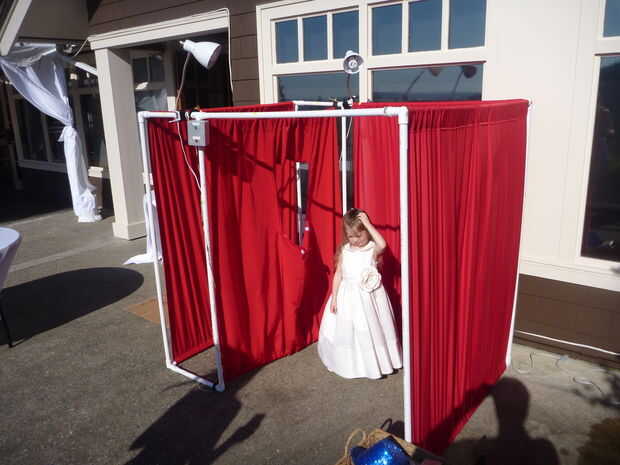 Mi amigo Diego tomó el cuidado de esta parte del proyecto. El Photobooth marco fue construido con tubos de PVC y juntas y su esposa hicieron un trabajo fantástico de coser a la tela que se desliza en el tubo de PVC.
