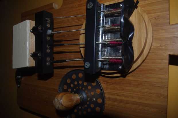 Punta - los componentes más necesarios pueden encontrarse por desarmar una guitarra baja (recolección, puente, potenciómetro, cadenas, resortes, terminal de salida de jack y algunos tornillos)