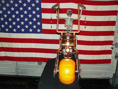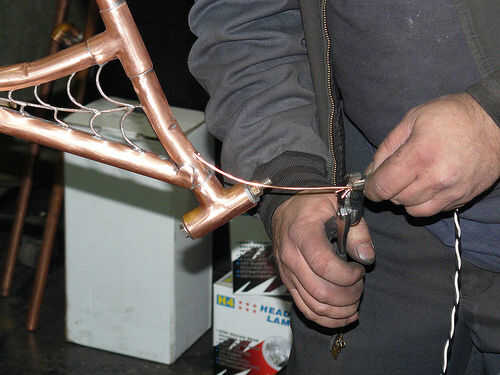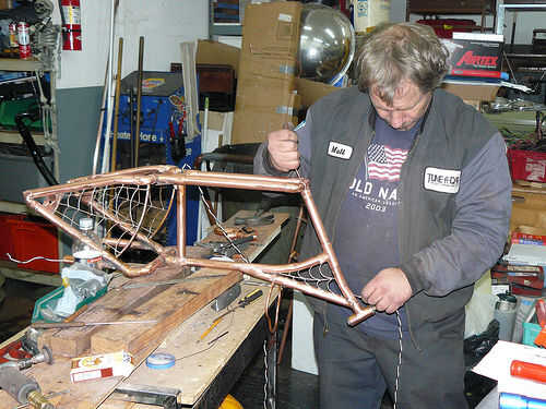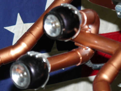 Las luces utilizan son de aplicaciones automotrices que requieren corriente continua de 12 voltios. Las linternas utilizan vinieron de una camioneta personalizada en una yarda de la demolición, se encontraban en el interior, montado en el techo como luces de mapa para los pasajeros traseros. Fue 1 luminaria con 2 luces giratorias que desmontado. Las luces traseras fueron algo que tuve puesta alrededor. Primero había trenzado 2 hilos juntos por medio de un taladro y el tornillo de banco, esto ayuda a pasar los cables a través del marco de ocultamiento. Utilice un alambre de percha para los cables de halar a través. Fije los cables a los faros y luces traseras, la polaridad puede o no puede ser un problema dependiendo de lo que su utiliza para las luces. Usé una batería de CC de 12 voltios pequeño que obtuve de una caja de alimentación backup ordenador. es una sellada, batería de 12 voltios recargable, prueba de derrames. También instalé un AC/DC de 12 voltios 500 ma del convertidor a la batería para evitar que la batería de muertos. Os adjunto un cable terminal negativo de la batería hacia el lado de tierra de los bulbos. En el terminal positivo que tengo un alambre corto va a un fusible de 15 amperios, entonces a un interruptor ON-OFF-ON, del interruptor de potencia puede ser ya sea cambiado a encender luces de potencia constante o conmutada para alimentar de energía a través de un flasher intermitente que causa las luces a parpadear, con las luces parpadeantes conservar la energía de la batería y también llamar la atención a la pantalla. Como si se necesita más atención a su Picador de cobre.