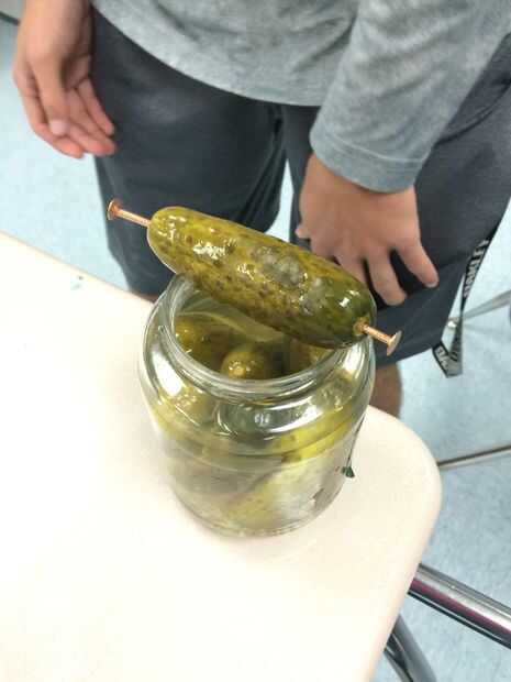 Empujar un alambre de cobre o cobre clavo en un extremo de la salmuera y exactamente lo mismo al otro lado.