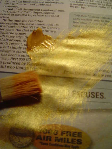 cepillado en seco con pintura de oro (uso un pincel seco con casi ninguna pintura en él y cosquillas en la superficie, la voluntad de pintura salen en las partes elevadas sólo y llevar a cabo la textura muy bien).