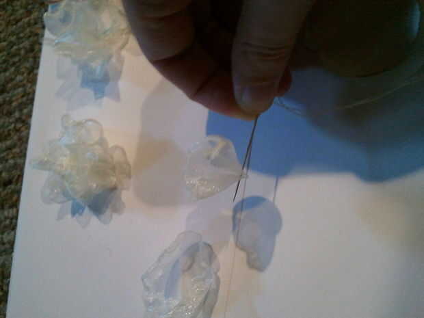 -Apriete el círculo en cuartos y luego quemar en su lugar. Cosa de 3-5 de estos juntos para hacer una esponjosa flor chamuscada.