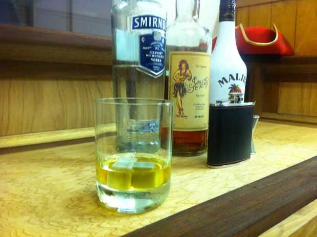 He hecho una pequeña receta de unos espíritus rectos me encanta que van juntos muy bien y se puede disfrutar sorbido o añadido a las bebidas de un matraz. La bebida se llama al pirata viajó porque contiene Caribe con especias y coco Ron y Vodka ruso. La receta es la siguiente: