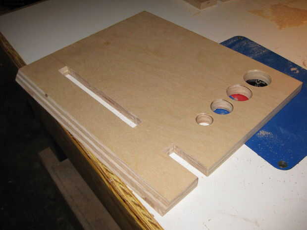 Los agujeros se graduó (tienen una función... ser paciente... todo será revelado), utilizar una pieza Forstner en el taladro y luego redondea los bordes sobre la mesa de fresadora.