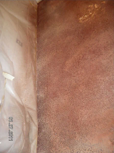 Yo prefiero el método "húmedo sobre húmedo". Usé un rociador de bomba como usan para rociar insecticida (disponible en cualquier ferretería) y bombea cada botella a la presión y usé uno y el otro solapado para que los colores de tinte se aplican al mismo tiempo y tipo de corrió juntos haciendo un bonito efecto y color que me gustó. La primera capa de tinte era sólo el rojo de que la segunda capa era cuando comencé la aplicación de color de dos manchas de "mojado sobre mojado". Después tuve la mayoría de mis colores rojizo que roció utiliza un tercer rociador de bomba y el color tannish en puntos al azar para confundirse con los tonos rojizos. La diversión lo mancha es no se puede hacer mal. Mancha la forma que desee y cuando los colores juntos se ven muy agradables.