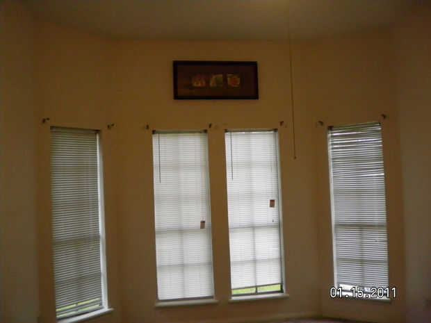 He pintado las paredes e instalar nuevas persianas mini. Mis ventanas son altos (72 pulgadas) y el flaco y yo sabía que quería comprar una cierta cortina así que no gastar mucho dinero en mini persianas. Compré los más baratos que pude encontrar en Wal Mart y parecen hacer el trabajo bien. Quería asegurarse de que mis colores todos vendría a darme la sensación que quería así que consideré mi ropa de cama y cortinas como seleccioné el color de la pared.