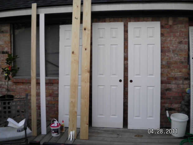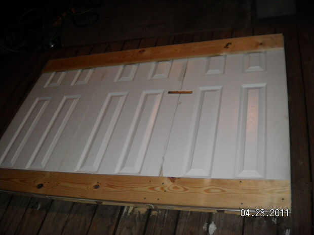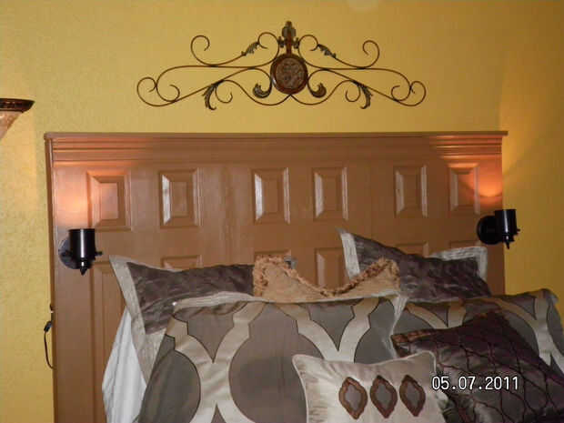 No tengo un cabecero que quería utilizar por lo que he comprado algunas puertas usados baratos de Craigslist y mi hijo y construí un cabecero que es permanentemente fijado a la pared de mi dormitorio. Nos imaginamos cómo sería y corte, pegado, clavado, atornillado y pintado hasta el cabecero de la habitación. Después de que fueron tomadas las fotos de cabecera agrego otra capa de pintura y una capa superior de poliuretano por lo que la cabecera ahora parece un poco diferente que lo hace en estas fotos.