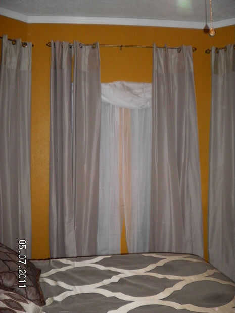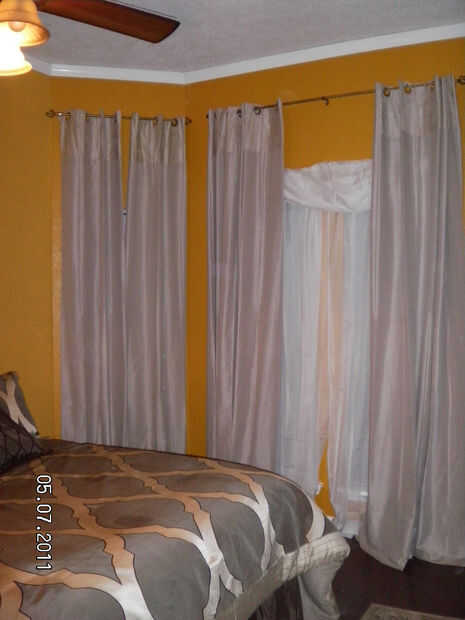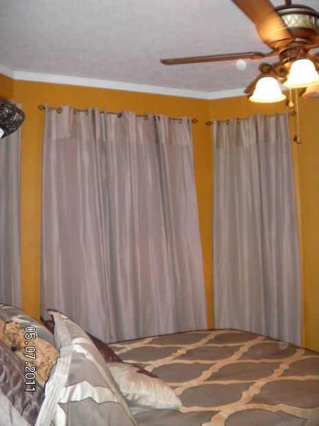 Un Consejo es considerar la altura del techo. El techo de mi dormitorio es 10 pies de altura así que me decidí a maximizar mi espacio de la pared y colgar mis nuevas cortinas de muy por encima de mi ventana para agregar altura a la sensación general de la habitación. Me gusta el aspecto que resultó!