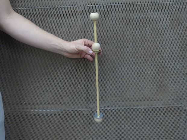 Utilice arandelas pesadas en el extremo inferior de la espiga para mantener el plato desequilibrado un poco equilibrado. Después de poner en algunas arandelas, otra bola de madera a medio camino a través del taladro y deslice en la parte inferior como un tapón. Usted puede siempre sacarlo más tarde para agregar, restar o mueva el peso.