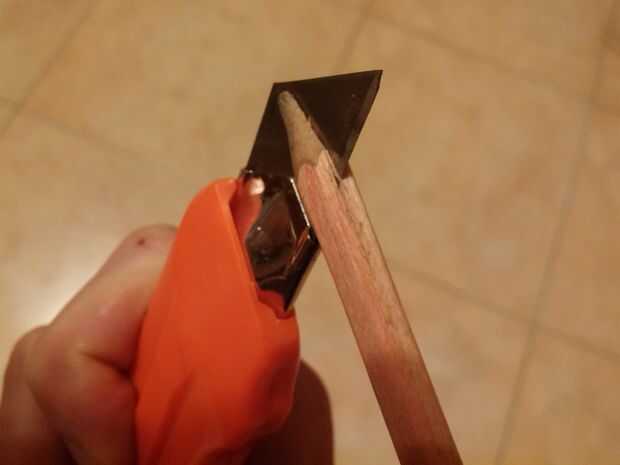 En tercer lugar, corte el lápiz como se muestra en la primera foto. Repita el procedimiento en los otros lados del lápiz hasta que el grafito viene de la madera. Es importante que el grafito no salen en decenas de pequeñas piezas, así que ten cuidado.