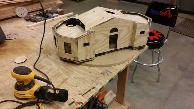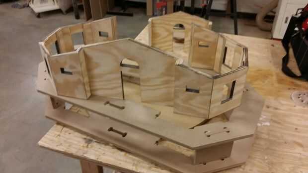 Después de los clavos, todo lo que tenía que suceder fue tomar las pinzas de MDF de la plantilla, y que mi amigo tiene un modelo acabado que es perfectamente cuadrada y funcional.