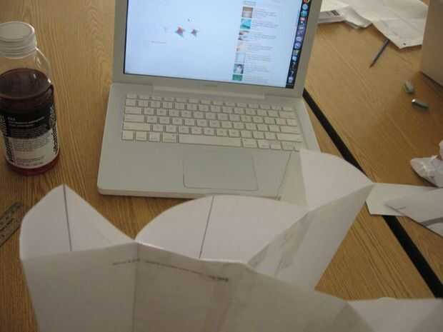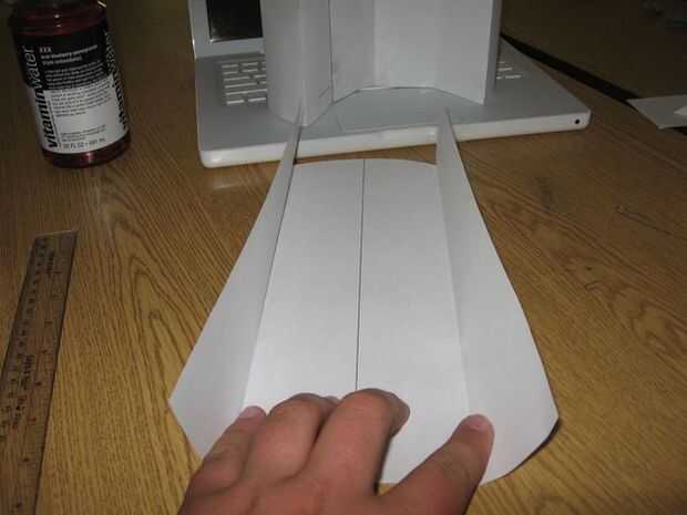 Ahora agarrar un pedazo de papel y trace una línea por el medio. doblar los bordes sobre la línea, por lo que sólo tiene dos pliegues, pero no en el medio. luego atach a las aletas.