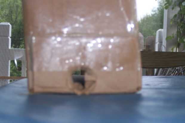 En primer lugar queremos hacer cualquier aletas del extremo abierto de la caja. Luego corte un agujero del tamaño de la boquilla en el lado cerrado. Puede realizar esto sin embargo quiero.