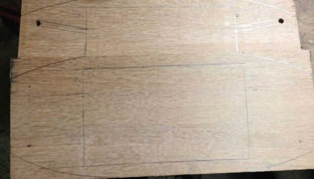 Ahora tienes que dibujar un rectángulo de 28 a 16 centímetros en dos de las 3 placas. Tienes que dibujar bien este rectángulo en el centro de la figura que dibuje antes de este paso.
