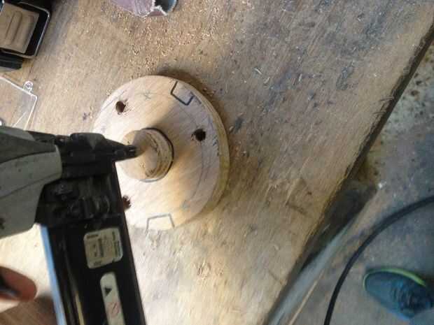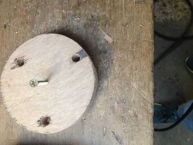 Al menos usted tiene que fijar los dos círculos a la placa superior. Tienes que hacer esto con un tornillo de 5 centímetros.