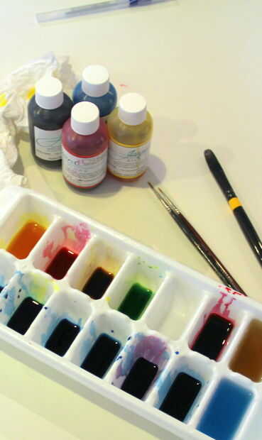 Cantidad: usé encima de una bandeja de hielo cubo de azul diluido en agua en mi bufanda.
