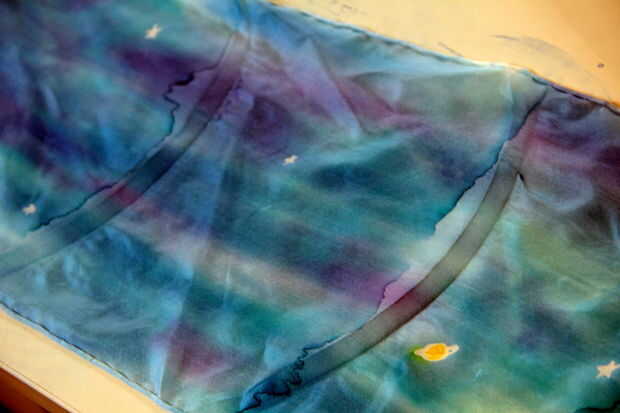Una vez que todo se presenta húmedo y está satisfecho con la textura de color de la tela, lo deje reposar hasta que esté seca.