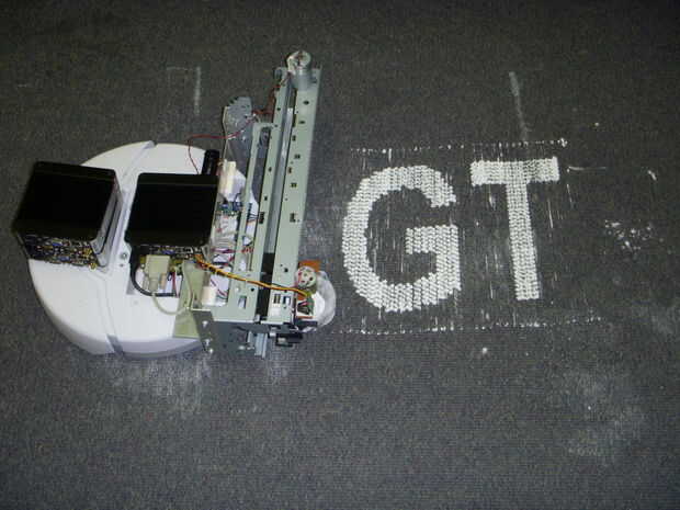 Con el robot para la base permite que el robot imprimir un tamaño virtualmente ilimitado. Pensar en campos de fútbol o canchas de baloncesto. Tal vez los rivales deben ser en la búsqueda de un enjambre de estos fin de semana de acción de gracias el año próximo. el robot también permite la movilidad de la impresora, lo que le permite viajar a un lugar para imprimir, a continuación, pasar a otro. Inalámbrico está incluido, control remoto también es posible. Publicidad y el arte de la acera es también un mercado objetivo de este dispositivo.