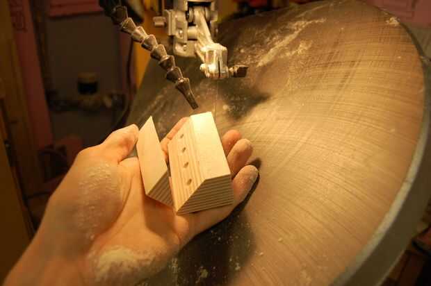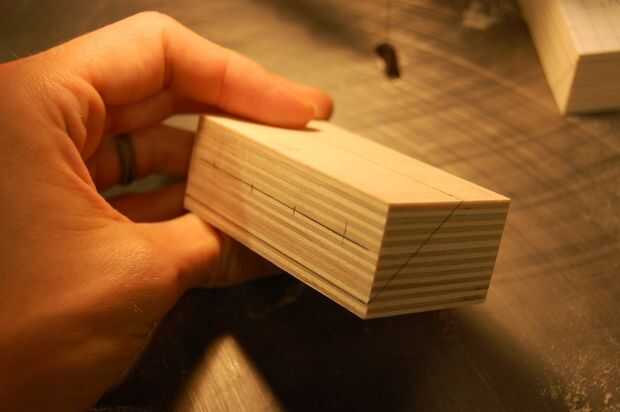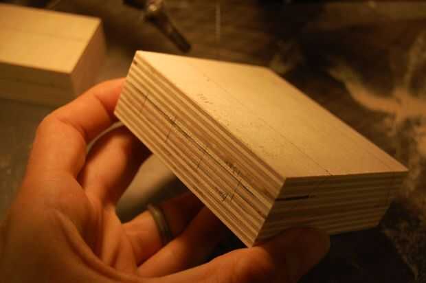 Los bloques se fabrican de dos capas de madera contrachapada de abedul Báltico (algo que tengo en la mano todo el tiempo estos días!), una 1/2 y uno 3/4". Había pegado con pegamento de carpintero, luego pegar los patrones directamente en la madera.