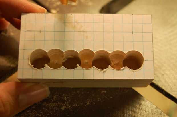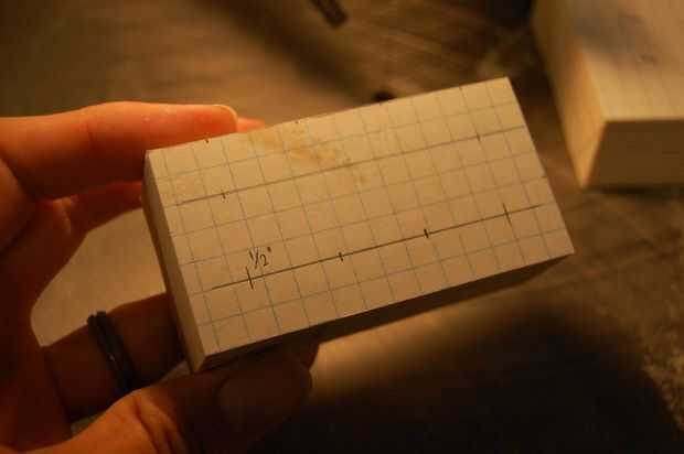 Dibujé a patrones de escala 1:1 en papel cuadriculado a planificar cómo deben construirse los bloques. Les he indicado las dimensiones básicas y donde deben taladrarse los agujeros.