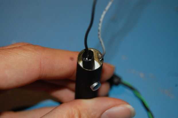 Como mencioné antes, no he podido abrir los láseres sin dañarlos. En cambio, desenroscar el cañón sosteniendo las pilas y soldar los cables directamente a los terminales. Bueno, eso es medio cierto. Soldar el cable negativo a la primavera en el centro y usa conductora epoxi para pegar el cable positivo al caso. Deseo que había una manera menos costosa para hacer esto. (Por favor, hágamelo saber si piensas en uno.) Terminado los cables en los conectores, en la misma forma que los sensores y los controles descritos anteriormente. Los lasers fueron ajuste ajustado y no necesito pegamento para mantenerlos en, pero por todos los medios añadir un poco de epoxi o pegamento caliente si usted encuentra que no permanecen en propios.