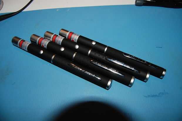Punteros láser verde de cuatro 10 mW (si vives en los Estados, láser de 5mW get porque 10mW es aparentemente ilegal) a posteriori, un láser rojo sería probablemente sólo era trabajo, pero no tiene que "cool factor..."