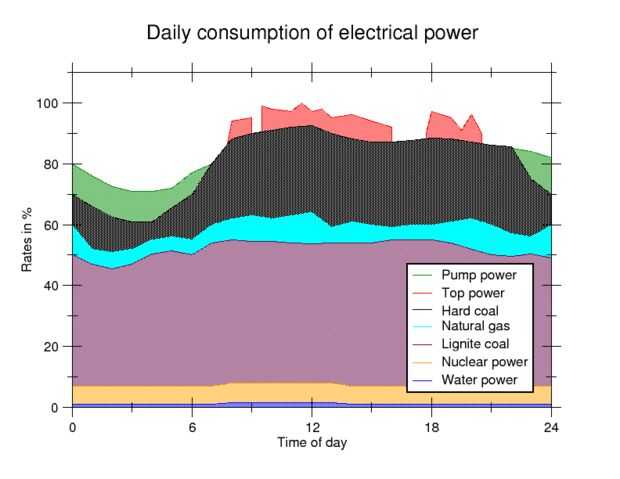 ' se puede ver que en promedio picos durante el mediodía y tarde, como todo el mundo está despierto. Pero también hay una caída durante la noche - el supuesto 'baja'. Si por ejemplo el viento sopla durante ese tiempo, mucha energía podría ir sin usar. Usted podría también fuego ellos turbinas y genera electricidad. Esta electricidad puede utilizarse para crear el hidrógeno mediante electrólisis.