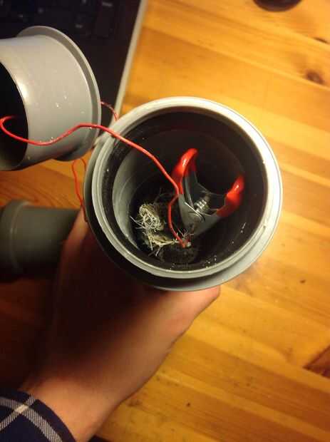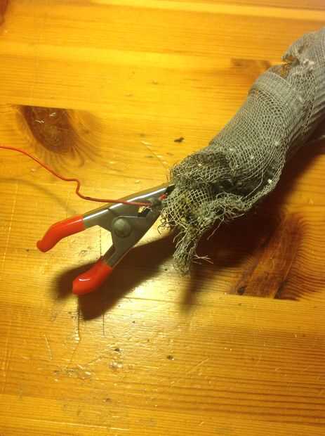 4. enrollar el material del electrodo para que quede dentro de la tubería (en cada lado)