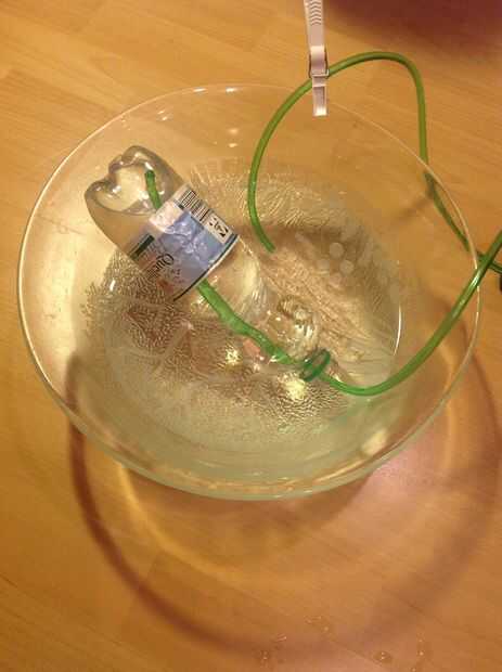 A continuación, deslice la manguera. Debe llenar lentamente la botella.