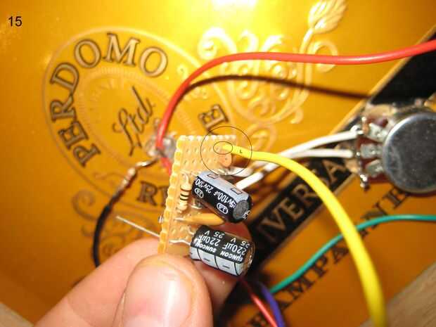 Imagen 15: El cable largo amarillo (L) del cuadro 12 para la .01uF del condensador en el circuito de la soldadura.