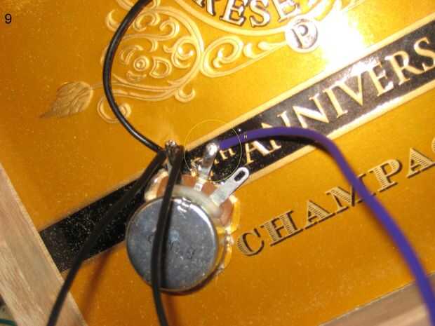 Ilustración 10: Soldar un alambre largo () a la primera terminal de la olla de 100 ohm.