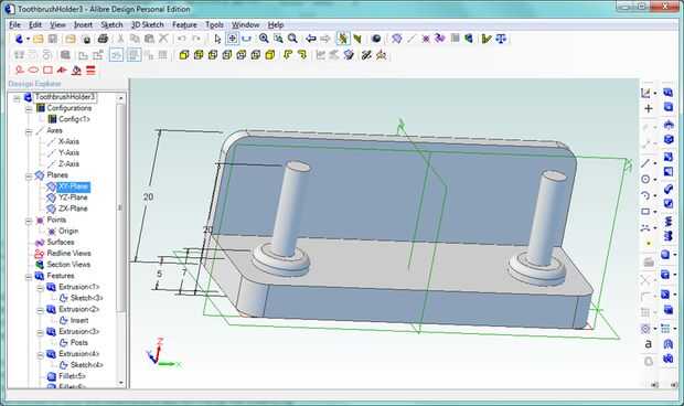 El programa de modelado de Alibre tiene algunas características del buen maquinista, como poder sacar una forma y poner esquinas redondeadas (filetes) en cualquier parte, incluso una curva.
