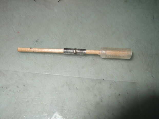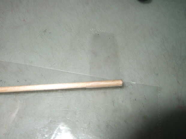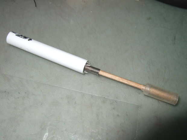 2. Tome el palo y enrollar alguna cinta alrededor un extremo, hasta que apenas cabe en el tubo de lápiz con una buena fricción ajuste.