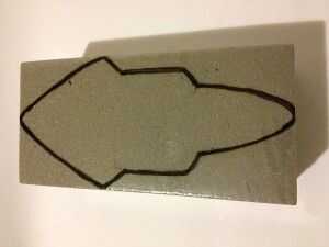 -Usando el pegamento PVA, fijar el contorno de su chasis en el bloque de espuma (en la imagen siguiente he bosquejado el contorno del robot sobre el bloque de muestra dónde conectar).