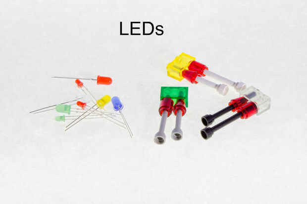 Los LEDs real a la izquierda y su versión Lego de la derecha.