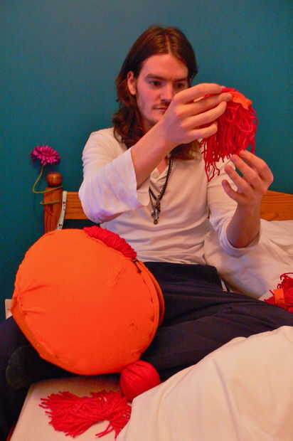 2. una vez que usted ha hecho todo el pelo que necesita para su máscara para el siguiente paso es a agregado. Usé algunas agujas en el que se fije todo el pelo en la cabeza para asegurarse de que lo cubriría. También mientras que entonces era sólo un asunto de coser todo a la cabeza. Ya que es necesario coser todas las tiras de fieltro naranja lo hace mucho más fáciles de colocar, incluso podría pegarlos en. Otra vez cubrí el pegar dentro de la cabeza con pegamento para asegurarse de que no viene aparte.
