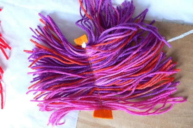 Opcional: Para conseguir el look color muliti básicamente sólo envuelve la lana roja alrededor de la cartulina como normal, pero luego x cantidad de muiliti color de lana en que entonces cosieron como normal. Básicamente basta con mantener lo que tantos como sea posible para cubrir la cabeza del Animal y para crear la barba. Esto realmente es a su preferencia! También pegué la costura en el medio para hacer más estable.