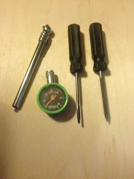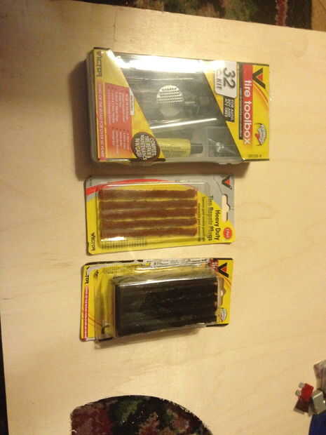 Un pequeño kit de reparación es igual de sencillo. Este es lo suficientemente pequeño como para caber en la guantera. Me gustaría T asas de las herramientas pero estos ajuste mejor en la guantera.