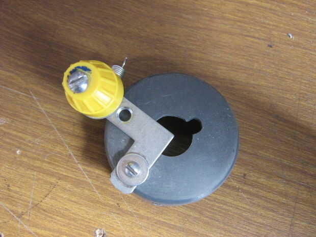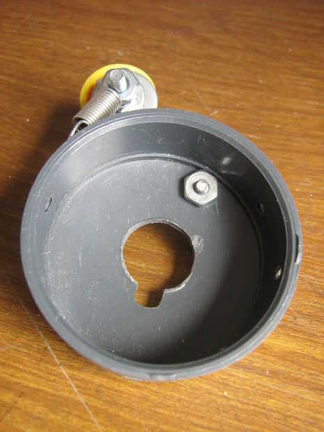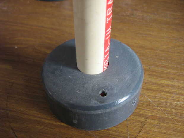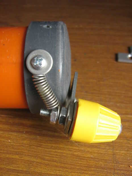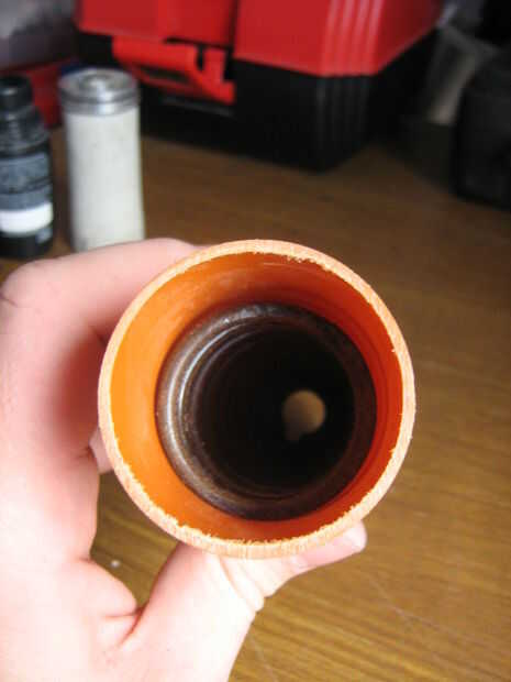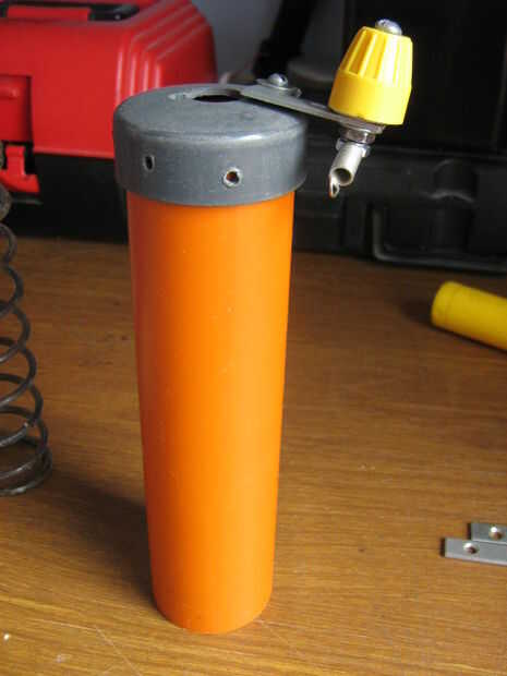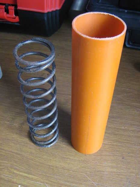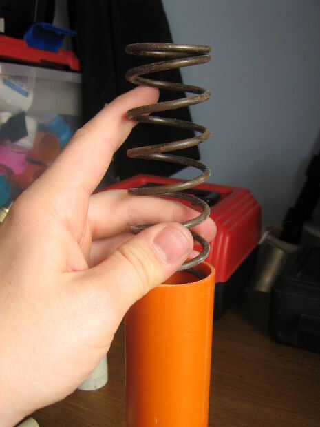 Tomar la tapa de PVC y hacer un agujero en el medio, lo suficientemente grande como para el tubo de PVC (o aluminio) del proyectil. El tubo debe ir suelto en el agujero. Atornille el gatillo en la tapa. Tiene que ser móvil. Par el PVC gran pipa en la tapa, introducir el resorte grande y fije la base de resorte, la tapa y el pipa del PVC con tornillos. Fijar el extremo del resorte pequeño en la tapa, así que usted puede presionar el gatillo y volverá.