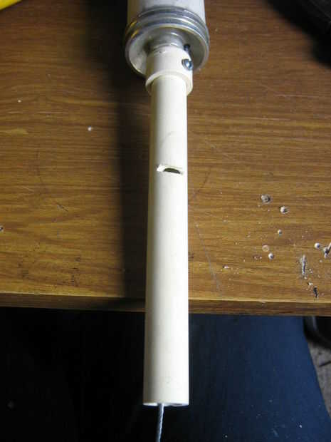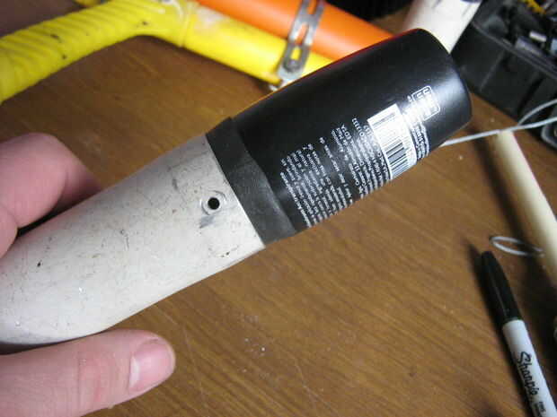Fijar el tubo de PVC en la tapa con tornillos. Hacer un corte pequeño en el centro de la tubería. Cuando usted carga el arma, el gatillo se introduzca en el corte, manteniendo listo para lanzar el proyectil.