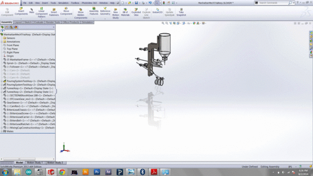 Tuve una idea general que necesito para conectar 4 módulos a la estructura: dos módulos de verter, un bíter de módulo y un módulo de mezclar/agitar. Yo quería operarse con una sola manivela de la máquina, y decidí que el proceso de hacer una bebida debe tomar aproximadamente 1 minuto. Dado que la gente generalmente gira manivelas en cerca de 60 rpm, que quería hacer el disco de entrada inestable un gusano, con un sinfin de 60 dientes que activaría cada parte a su vez.