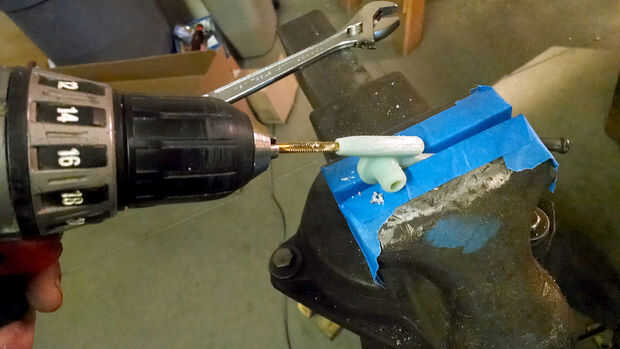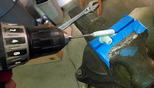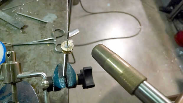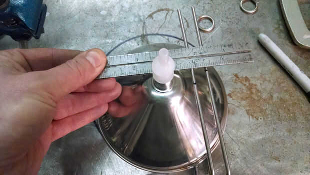 Porque los soportes Quick Clamp que sujetan el módulo de verter sobre el armazón se encuentran fuera del centro, el soporte de embudo por debajo que construirá centro. Usted puede ver en las imágenes cómo peanas estas piezas para soldadura TIG. Se hacen de varilla inoxidable 304 del diámetro de 1/8".