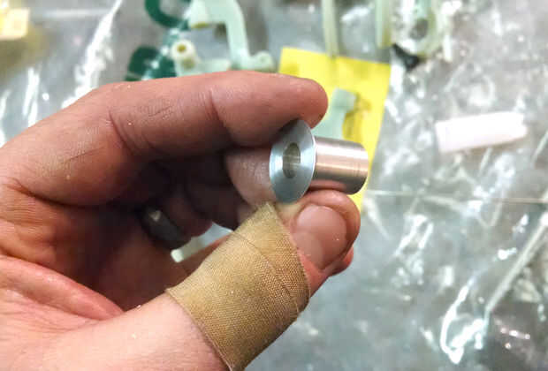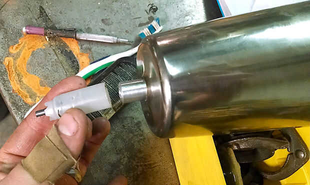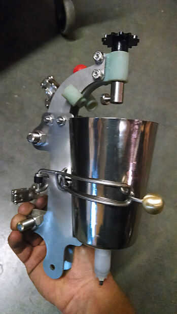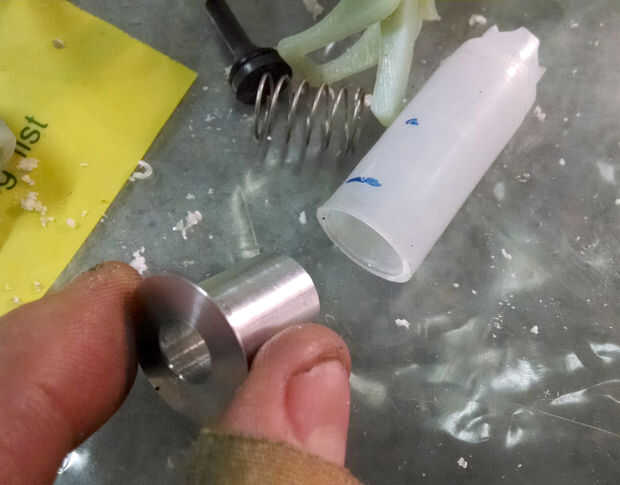 He comprado una botella de gran diámetro relleno (como éste: http://www.amazon.com/Plastic-Spring-Tip-Bottle-Fi... quitado el tubo y se volvió una pieza avellanada acoplamiento de aluminio en el torno.