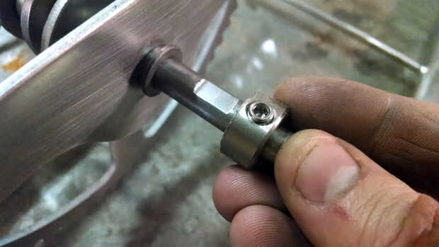 Entonces el engranaje parcial comienza girando la Asamblea agitación; una rueda dentada y cadena hacen la agitación del brazo gire dentro de la taza de la coctelera durante un tiempo.