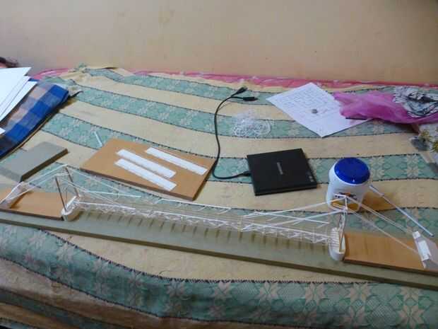 Ahora nuestro puente se completa en todos los aspectos. Tenemos que montar el puente entero a una base firme. He utilizado una pieza adecuada del tablero de la prensa y pega los pedazos de extremo a la base