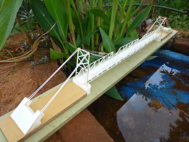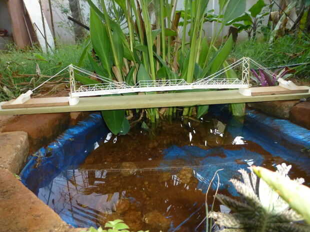 Este es el modelo del puente en papel, que muestra en el pequeño estanque jardín construí antes. Me tomó alrededor de un mes para recordar y diseñar el puente de mi memoria que he construido hace 33 años. Tenía sólo 24 años cuando terminé el puente sobre el río Phairuang...