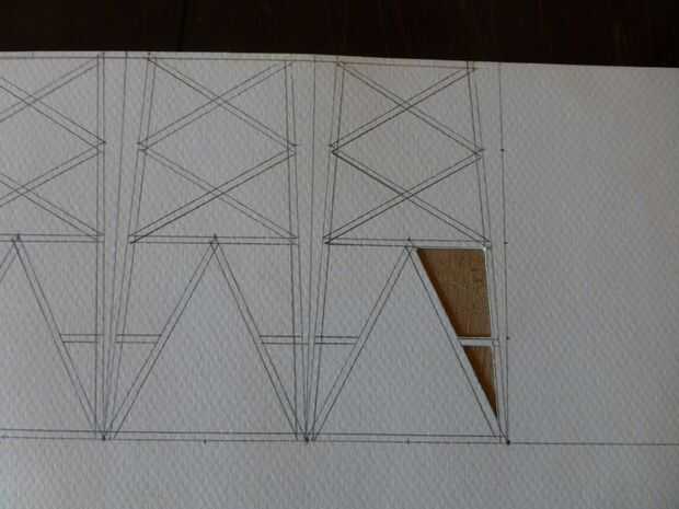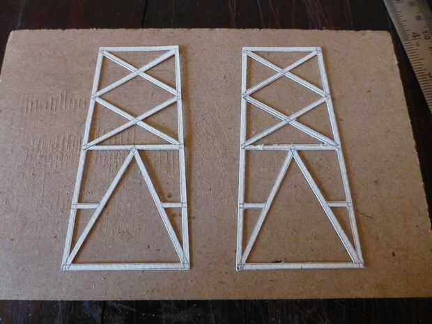 Aquí, yo he dibujado las torres para escalar y cortar a la forma requerida, utilizando un cuchillo. Necesitamos dos torres, una en cada extremo. Sin embargo, como el papel no puede soportar la carga, he hecho cuatro piezas y dos de ellas pegadas a una torre única forma.