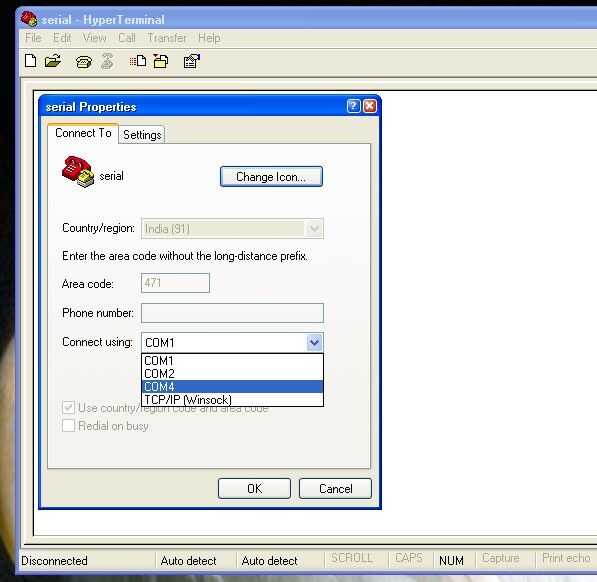 Seleccione el puerto serie que vaya a utilizar. Si no está seguro, pruebe cada uno alternadamente hasta que te tropiezas en la derecha.